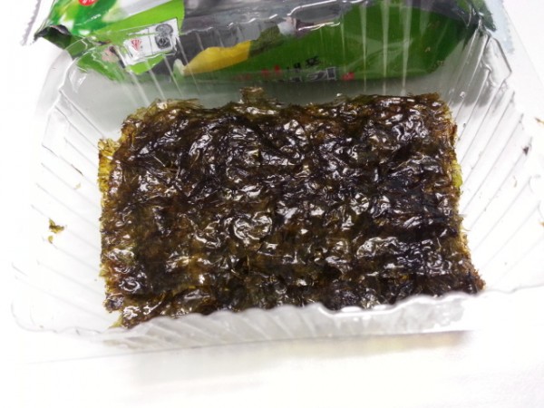 Defect: After open the pack, found that the seaweeds were oxidized, color became brownish, texture became soggy and wet